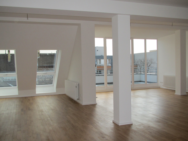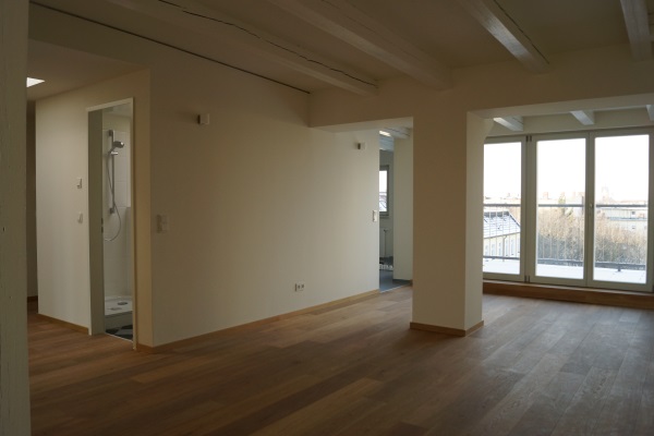 - Bauabschnitt I: Teilerneuerung & Ausbau Dach, Ausbau Mietbereich |